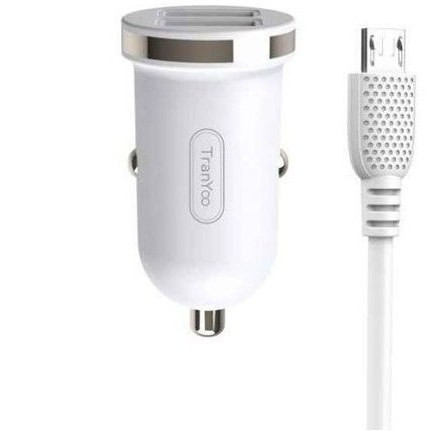 شارژر فندکی ترانیو مدل C12 دو پورته بههمراه کابل Micro USB، مناسب شارژ سریع و ایمن گوشی و لوازم دیجیتال در خودرو.