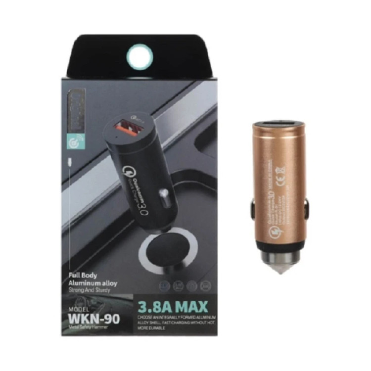 شارژر فندکی WK WKN-90 با شدتجریان حداکثری 3.8 آمپر و پشتیبانی از Quick Charge 3.0، مناسب شارژ سریع و ایمن گوشی موبایل در خودرو.