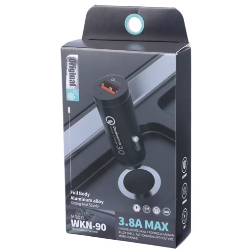 شارژر فندکی WK WKN-90 با شدتجریان حداکثری 3.8 آمپر و پشتیبانی از Quick Charge 3.0، مناسب شارژ سریع و ایمن گوشی موبایل در خودرو.