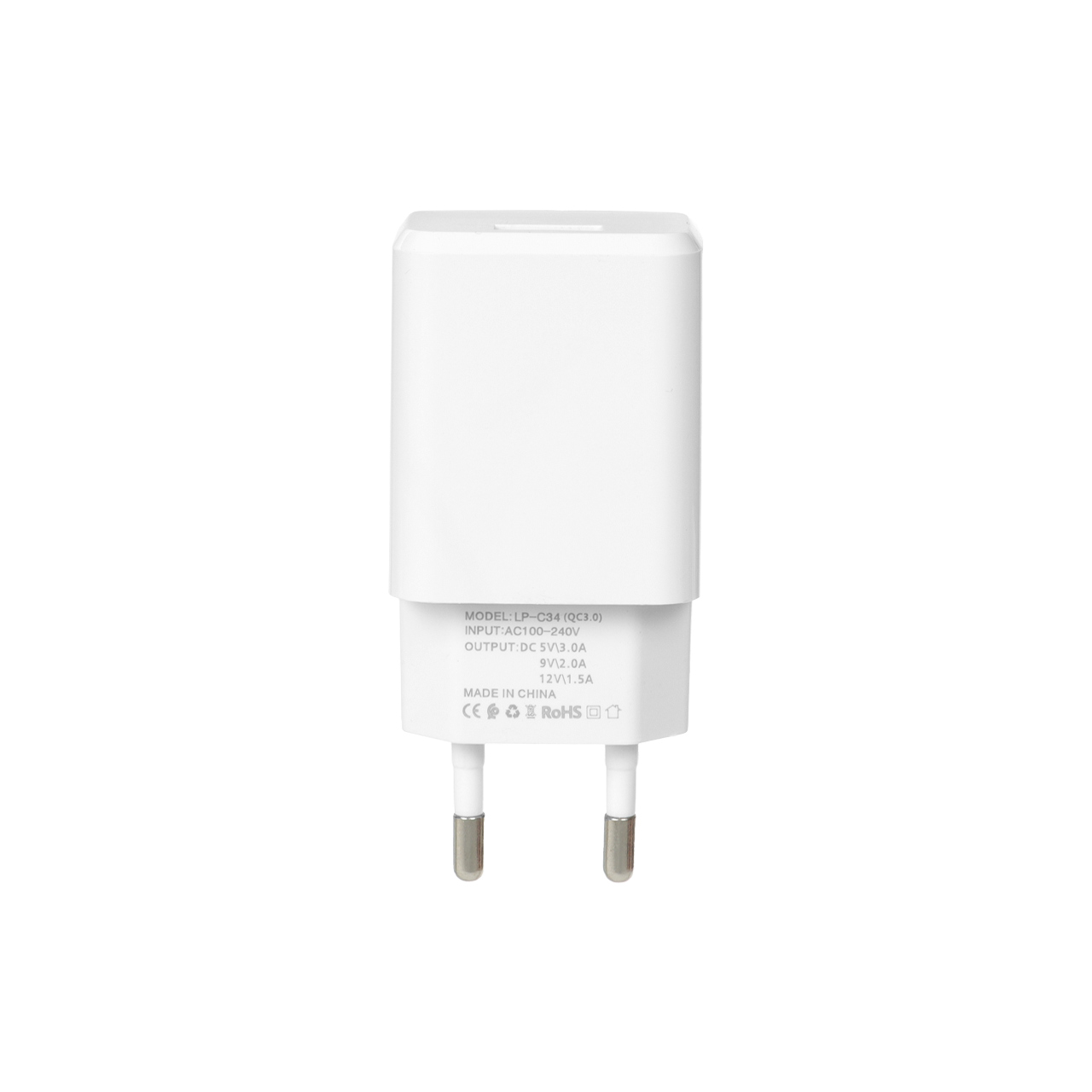 شارژر دیواری Lapramol LP-C34 با توان خروجی ۱۸ وات و پشتیبانی از Quick Charge 3.0، شارژی سریع، پایدار و ایمن را برای گوشیهای هوشمند فراهم میکند.