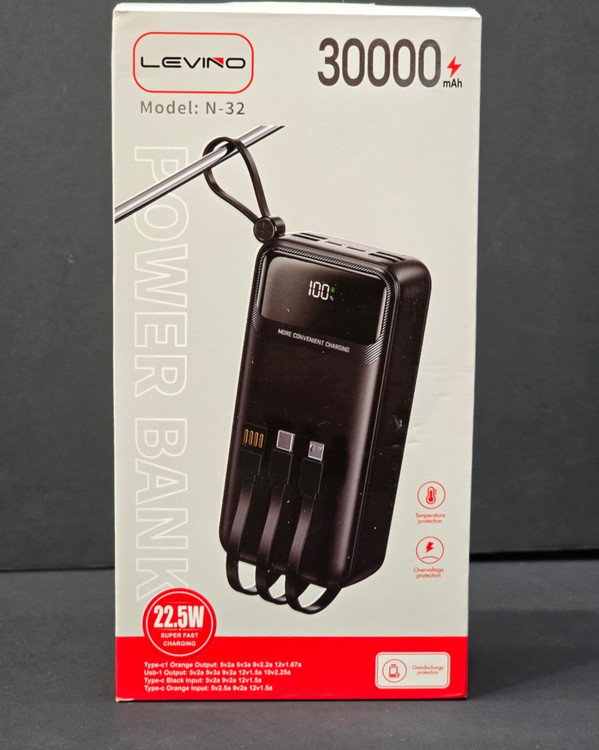 لوینو N-32 پاوربانکی متعادل بین ظرفیت و سرعت شارژ است. ظرفیت ۳۰٬۰۰۰ میلیآمپر برای استفاده طولانی کافی است و شارژ سریع 22.5 وات باعث میشود زمان انتظار برای شارژ دستگاهها کاهش یابد، هرچند وزن آن از مدلهای سبک بیشتر است.