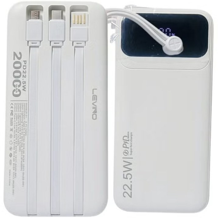 پاوربانک ۲۰۰۰۰ میلیآمپر لوینو مدل N31 با توان خروجی 22.5 وات، انتخابی مطمئن برای شارژ سریع و پایدار دستگاههای هوشمند است.