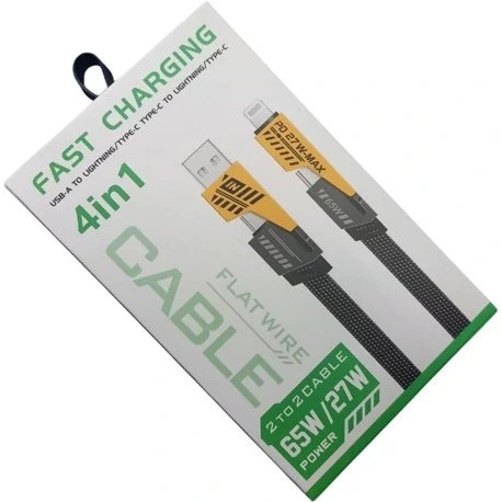 کابل شارژ سریع 4 در 1 فلت 65W/27W یک راهحل ساده و کاربردی برای شارژ انواع دستگاهها با یک کابل است.