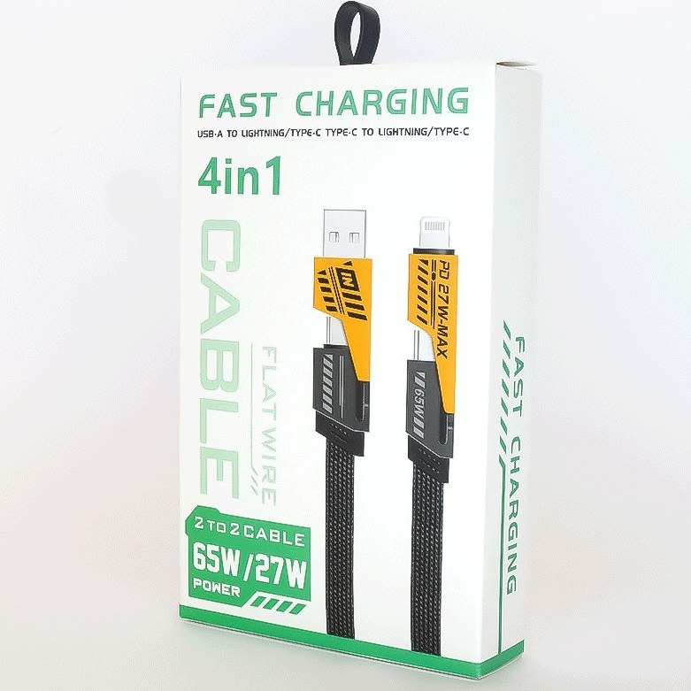 کابل شارژ سریع 4 در 1 فلت 65W/27W یک راهحل ساده و کاربردی برای شارژ انواع دستگاهها با یک کابل است.