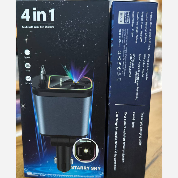 این شارژر فندکی خودرو با توان ۶۶ وات واقعی و طراحی ۴ در ۱، امکان شارژ همزمان چند دستگاه را فراهم میکند.