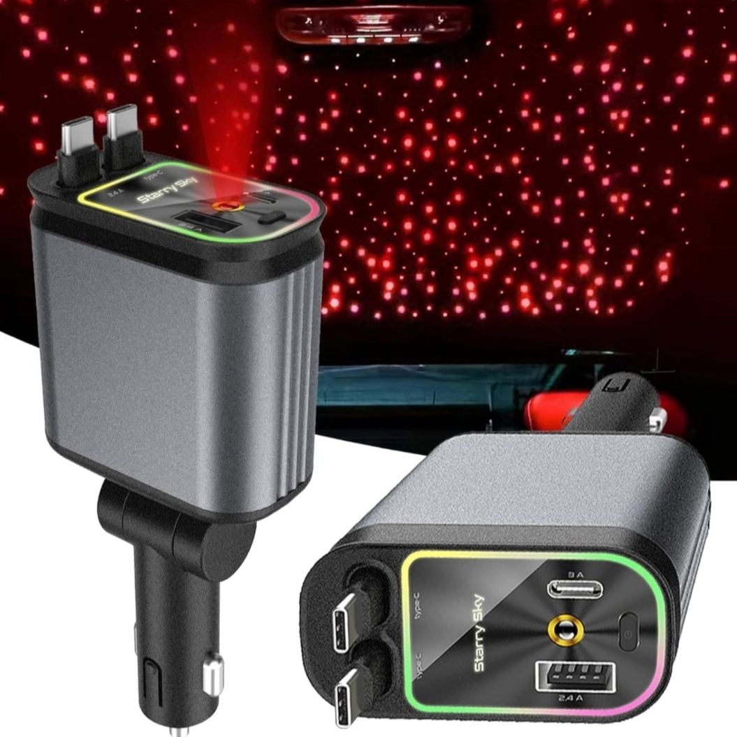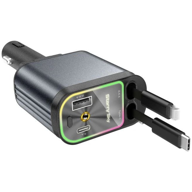 این شارژر فندکی خودرو با توان ۶۶ وات واقعی و طراحی ۴ در ۱، امکان شارژ همزمان چند دستگاه را فراهم میکند.
