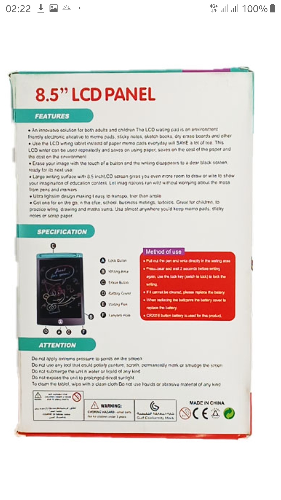 تبلت نقاشی ال سی دی انوایرومنتالی LCD Panel مدل 8.5 اینچ (اصلی)
