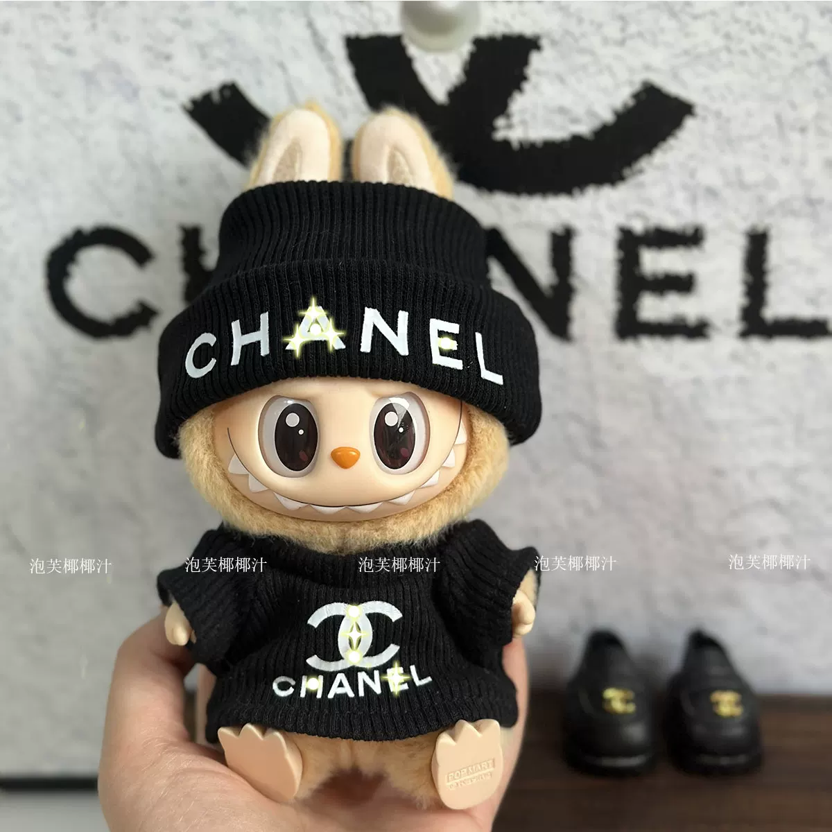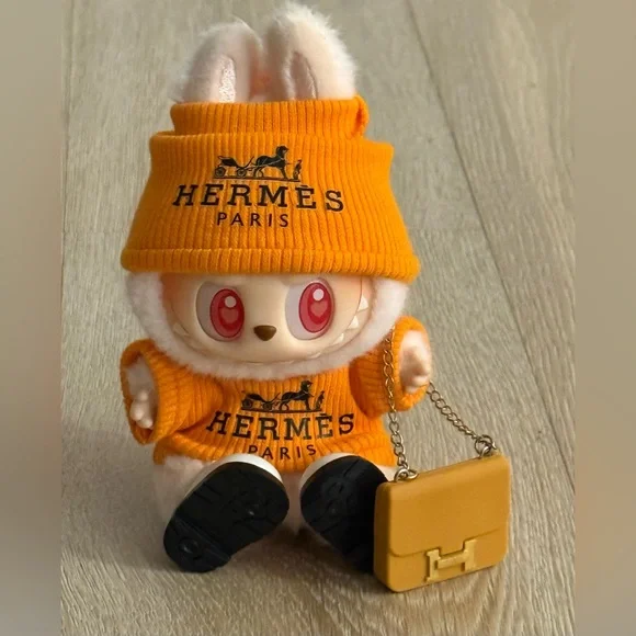 عروسک دکوری لبوبو فشنپوش از محصولات خاص و کلکسیونی برند POP MART است که با لباسهای الهامگرفته از برندهای لوکس مانند Hermès و Chanel طراحی شده است.