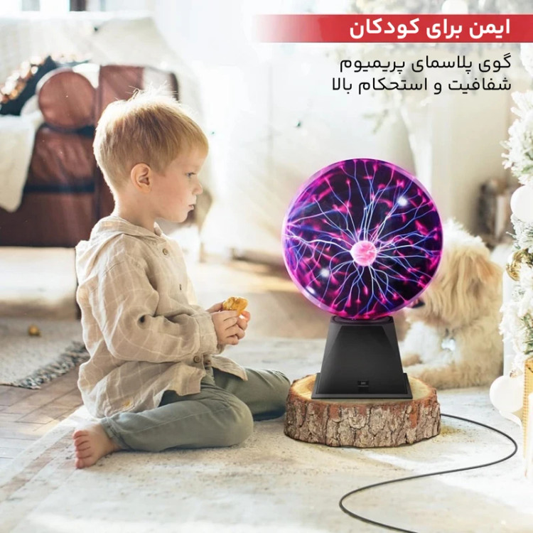 گوی پلاسما لمسی با جلوههای نوری الکتریکی که با تماس دست واکنش نشان میدهد و فضای محیط را خاص میکند.