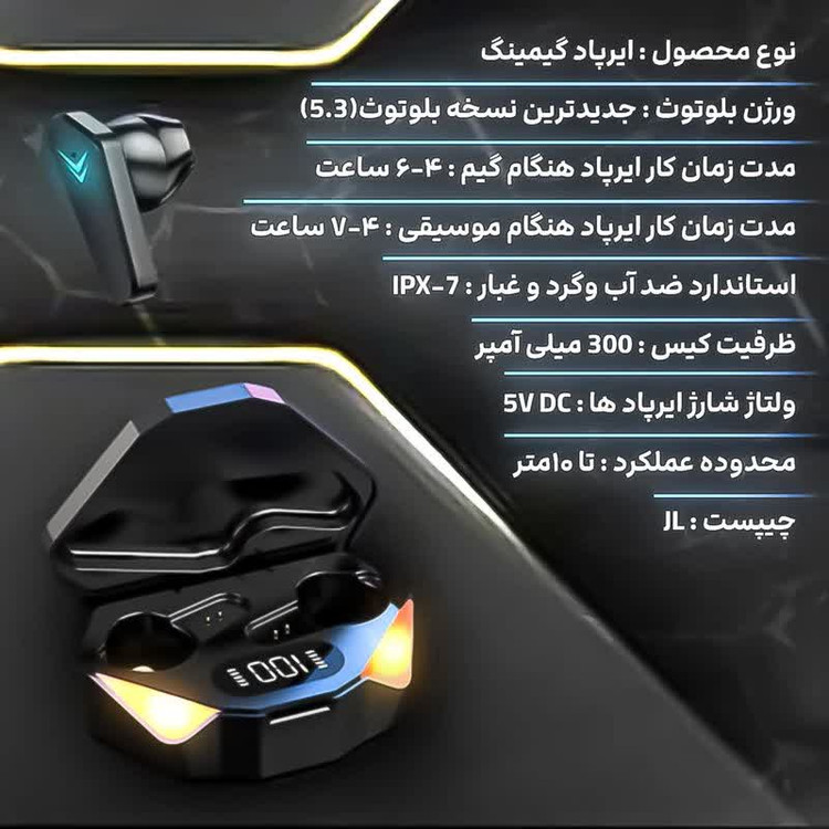 نوع محصول: هدفون بیسیم گیمینگ (TWS)