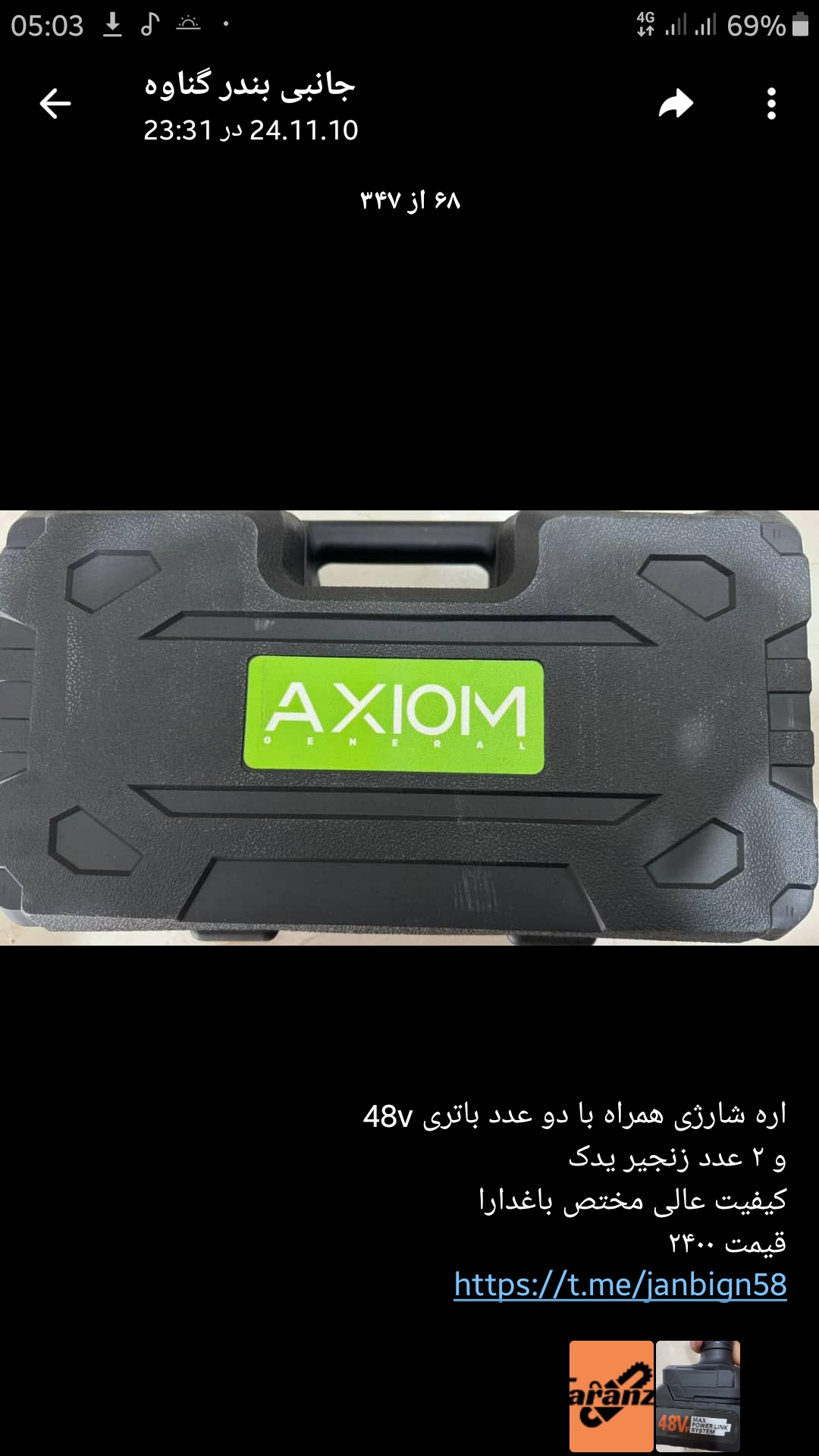 اقلام همراه: باتری، زنجیر، کیف حمل