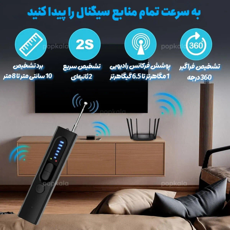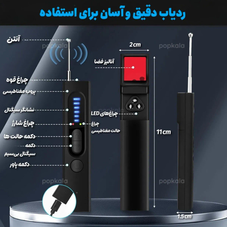 دستگاه سیگنالیاب هوشمند T15 یک ابزار کاربردی برای تشخیص و هشدار نسبت به وجود سیگنالها و امواج غیرمعمول در اطراف شماست. این محصول با آنتن تلسکوپی و نشانگر LED سطح سیگنال، امکان بررسی سریع محیط را فراهم میکند.