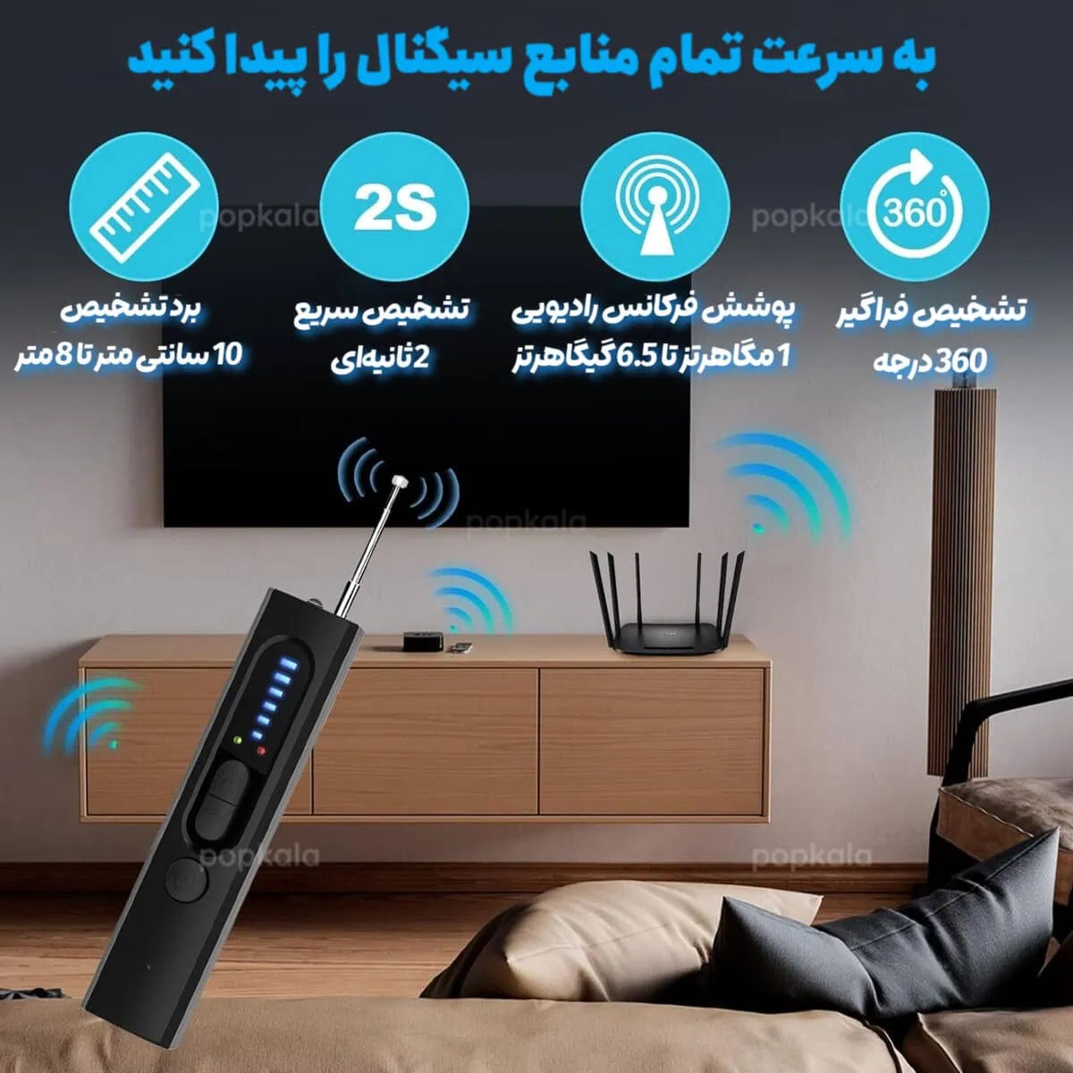 طراحی جمعوجور و سبک آن باعث میشود بتوانید بهراحتی در خانه، محل کار، خودرو یا سفر از آن استفاده کنید. وجود دکمههای کنترلی فیزیکی، استفاده از دستگاه را ساده و قابل فهم کرده و نمایشگر نوری، شدت سیگنال شناساییشده را نشان میدهد.