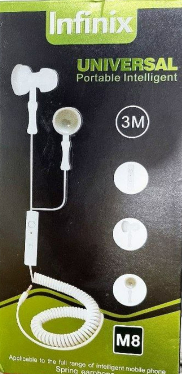 هندزفری سیمی فنری اینفینیکس مدل M8 یک گزینه اقتصادی و کاربردی برای مکالمه و پخش موسیقی است.