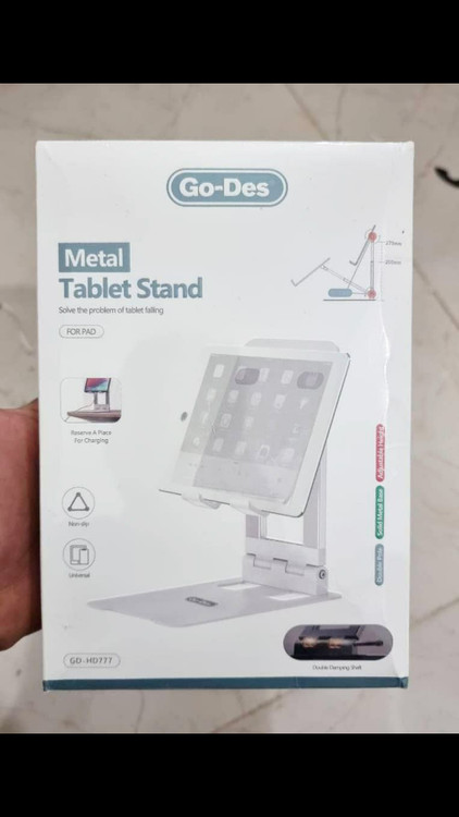 استند فلزی Go-Des GD-HD777 با طراحی مقاوم و پایه ضدلغزش، نگهداری ایمن تبلت را در هر زاویه ممکن میکند.