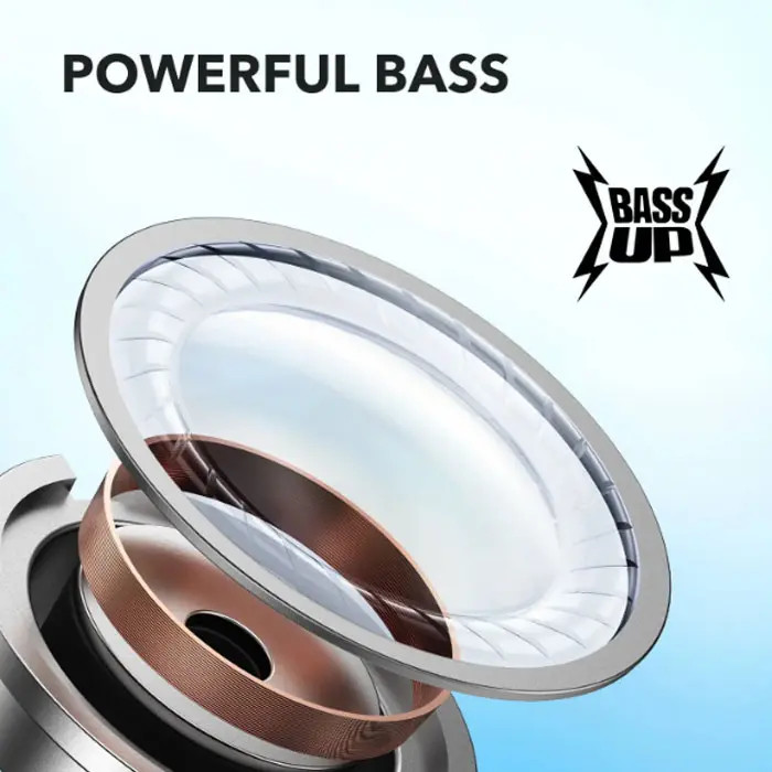 هندزفری بیسیم انکر R50i دارای درایورهای بزرگ 10 میلیمتری است که صدای قدرتمندی را همراه با باس تقویتشده ارائه میکند تا بتوانید از شنیدن موسیقی مورد علاقه تان لذت ببرید.