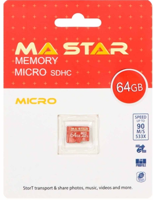 کارت حافظه MA STAR 64GB Micro SD با سرعت بالا، مناسب ذخیرهسازی و انتقال عکس، ویدئو، موسیقی و اپلیکیشنها در انواع دستگاهها.
