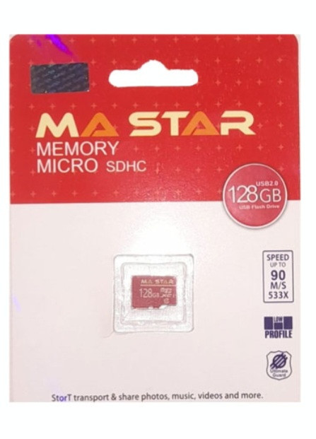 کارت حافظه میکرو اس دی ما استار 128 گیگابایت667x usb2,speed 100,class10(اصلی) با گارانتی مادام العمر
