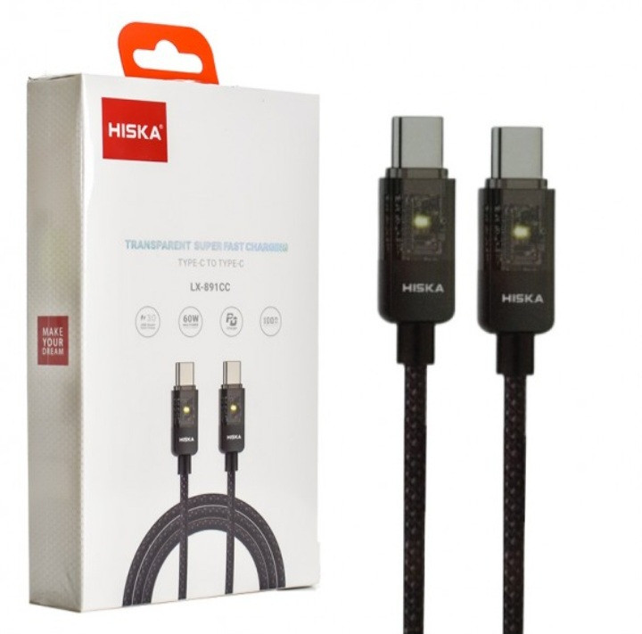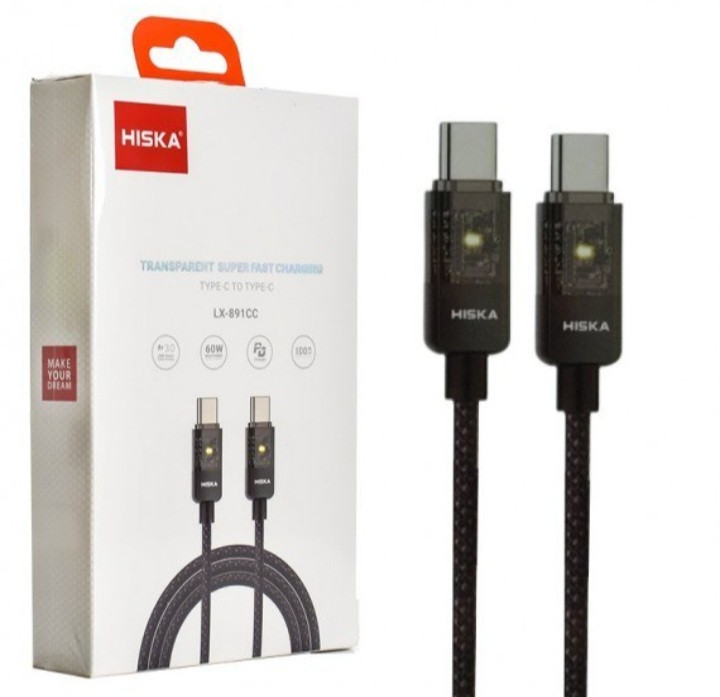 کابل شارژ تایپ C به تایپ C هیسکا (اصلی) مدل LX-891CC با تمرکز بر سرعت، ایمنی و دوام طراحی شده است. این کابل از فناوری Super Fast Charging پشتیبانی میکند و میتواند تا توان 60W را برای شارژ گوشی، تبلت و حتی برخی لپتاپها منتقل کند.
