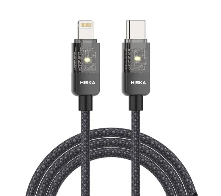 کابل شارژ تایپ C به لایتنینگ هیسکا با پشتیبانی از شارژ سریع 27 وات و طراحی شفاف کانکتورها، گزینهای ایدهآل برای شارژ سریع و ایمن دستگاههای اپل است.