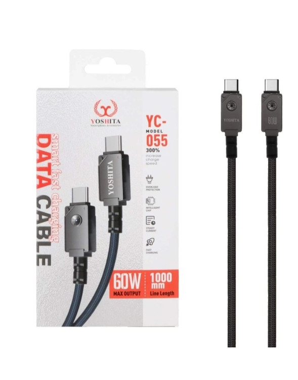 کابل تایپ C به تایپ C یوشیتا مدل YC-055 با توان 60 وات واقعی، انتخابی قدرتمند برای شارژ سریع لپتاپ، موبایل و تبلتهای مجهز به USB-C است.