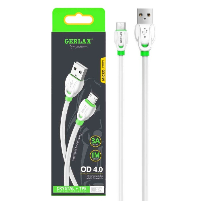 کابل GERLAX Micro USB با ساختار شفاف (Crystal) و روکش TPE مقاوم طراحی شده تا در برابر خمشدن، کشیدگی و استفاده مداوم دوام بالایی داشته باشد.