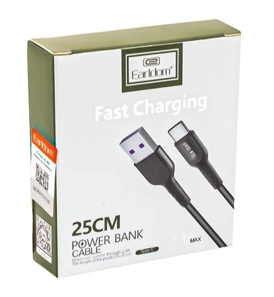 کابل پاوربانکی Earldom Type-C با طول ۲۵ سانتیمتر، انتخابی کاربردی برای استفاده با پاوربانک است.