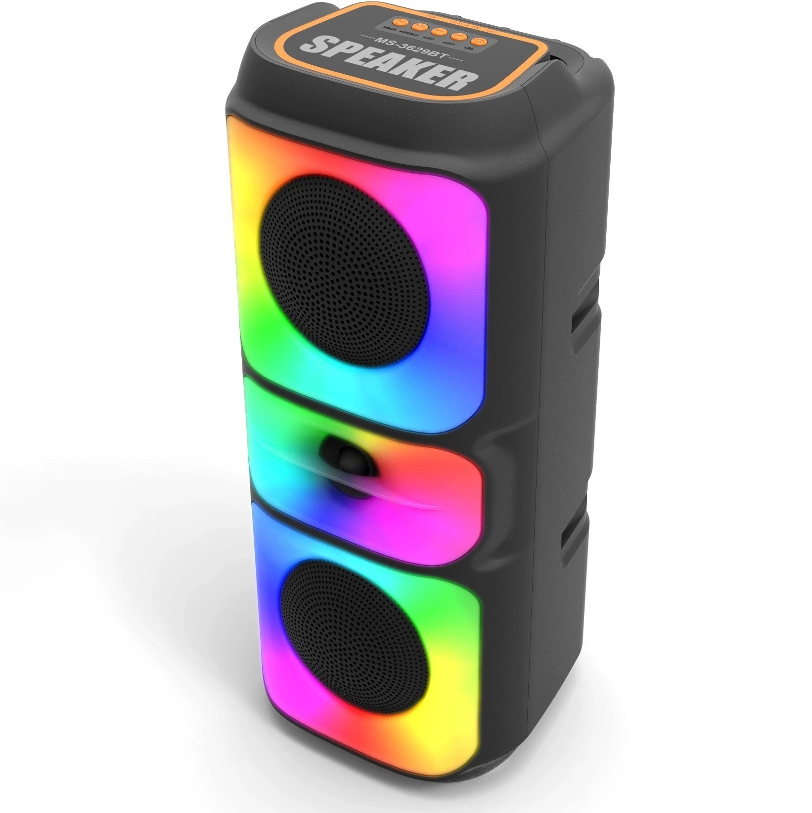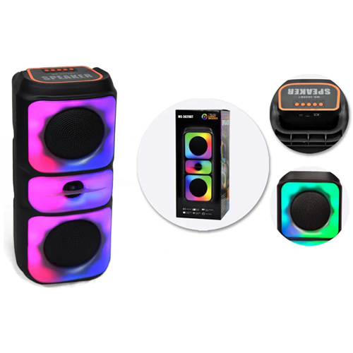 اسپیکر MS-3629BT با طراحی مدرن و نورپردازی RGB چندحالته، گزینهای مناسب برای پخش موسیقی در مهمانیها و استفاده روزمره است. اتصال بلوتوث پایدار و باتری داخلی، کاربری آن را ساده و لذتبخش میکند.