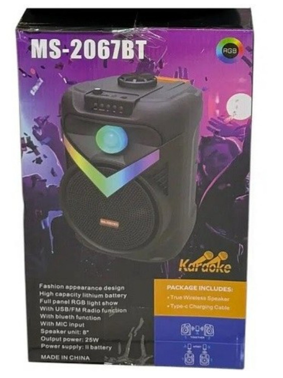 MS-2067BT انتخابی مناسب برای کاربرانی است که صدای قوی، نورپردازی RGB و قابلیت کارائوکه را در یک اسپیکر قابلحمل و مقرونبهصرفه میخواهند.
