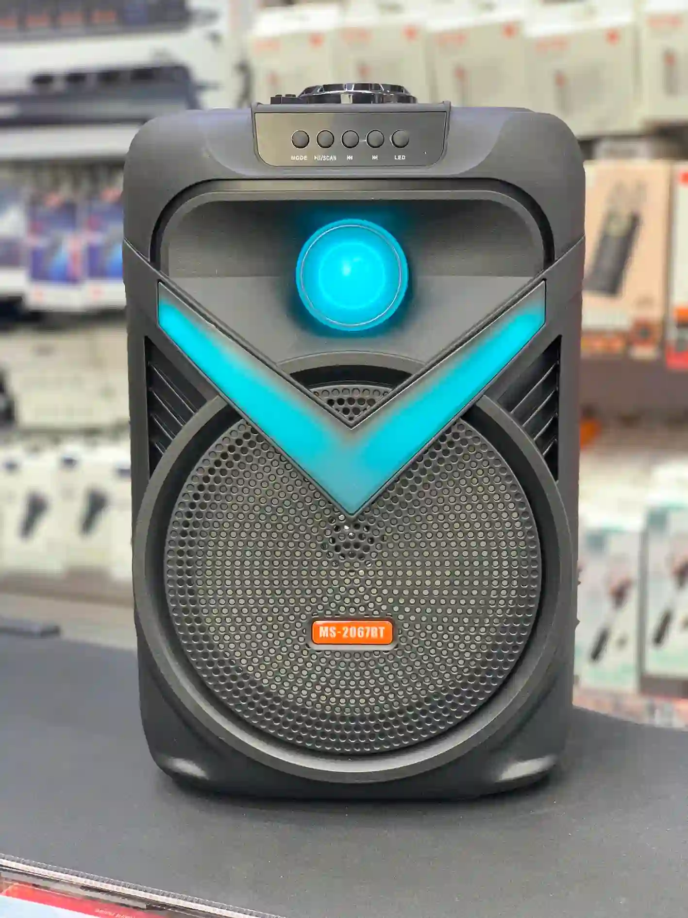 اسپیکر MS-2067BT یک اسپیکر بلوتوثی قابلحمل با نورپردازی RGB تمامپنل و صدای قوی است که برای دورهمیها، مهمانیها و استفاده خانگی طراحی شده و کاربری سادهای دارد.