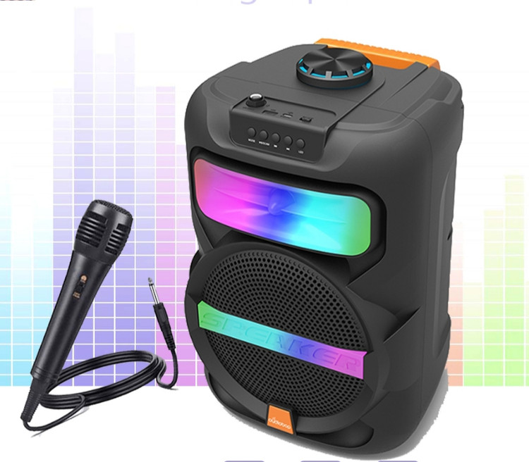 این مدل با بدنهی بزرگ و طراحی حرفهای، صدایی حجیم و واضح تولید میکند. نوارهای نورپردازی RGB جلوهای جذاب به اسپیکر میدهند و آن را به گزینهای ایدهآل برای دورهمیها و مراسم تبدیل میکنند. پشتیبانی از بلوتوث، USB و رادیو FM باعث میشود محدودیتی در پخش موسیقی نداشته باشید. وجود ورودی میکروفن نیز امکان استفاده برای کارائوکه و سرگرمی گروهی را فراهم میکند.